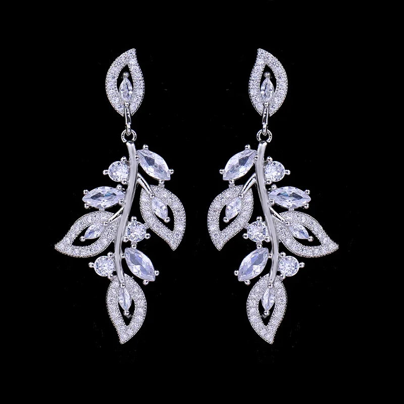 To olśniewający, długi model, który zachwyca misternym, roślinnym wzorem i imponującą kaskadą blasku. Ich zjawiskowa, rozbudowana forma, przypominająca delikatne pnącze lub girlandę, została w całości wysadzana lśniącymi kryształami.