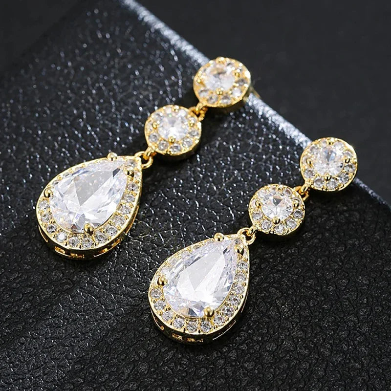 Każdy z trzech głównych elementów – dwa okrągłe i duża łza na zakończeniu – został otoczony lśniącą aureolą mniejszych kryształków. Taka konstrukcja w stylu halo w zjawiskowy sposób potęguje blask i sprawia, że kolczyki mienią się przy każdym ruchu, gwarantując luksusowy i niezapomniany efekt.